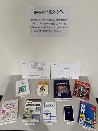 鹿田分館は生命科学系の専門図書館ですが、実は生命科学以外にも色々な本を持っています。館内でも離れた場所にあったり、医学とは違う分類番号が付いていたり、普段は気が付かないそれら“意外な”本たちを紹介する展示です。